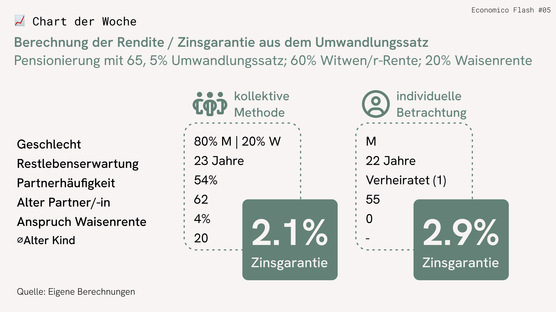- Kollektiv: 5% UWS ⇔ ca. 2.1% Zinsgarantie